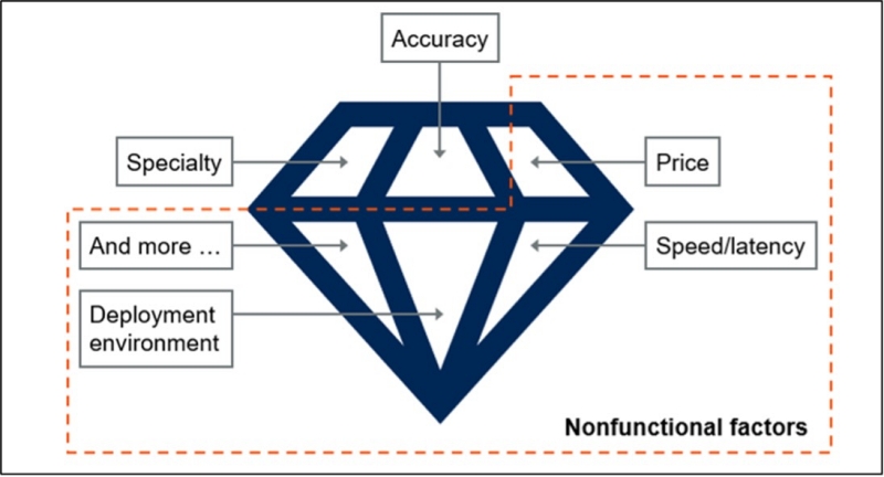 “가장 적합한 모델을 선택하려면 먼저 공통 벤치마크를 활용해 모델의 기본 역량을 평가해야 합니다. 그 다음 성능과 가격, 처리 속도, IP 보호, 배포 방식 등 비기능적 요소 간의 상충 관계를 고려합니다.