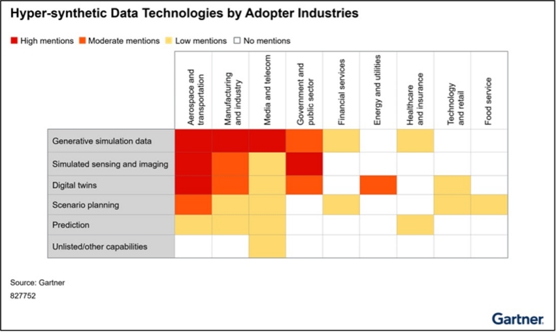 “합성 데이터는 실제 데이터가 부족하거나, 민감하거나, 역동적인 시나리오에 유용합니다. 가트너 분석에 따르면, 합성 데이터 활용 경향은 산업별 데이터 요구사항과 활용 목적 등에 따라 달라집니다.