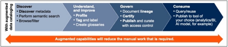 기업은 메타데이터 관리 솔루션을 구축할 때 능동적 메타데이터 관리 접근법을 취해야 합니다. 이는 전통적인 수동적·정적 정리에서 벗어나, 동적·지속적·실시간으로 메타데이터를 활용해 자동화, AI/ML 기반 인사이트, 데이터 소스와 데이터 파이프라인 전반의 최적화를 지원하는 것을 의미합니다. 능동형 메타데이터 관리 솔루션에 요구되는 역량은 네 가지 핵심 기능(탐색, 이해와 개선, 관리, 활용)을 포함합니다.”