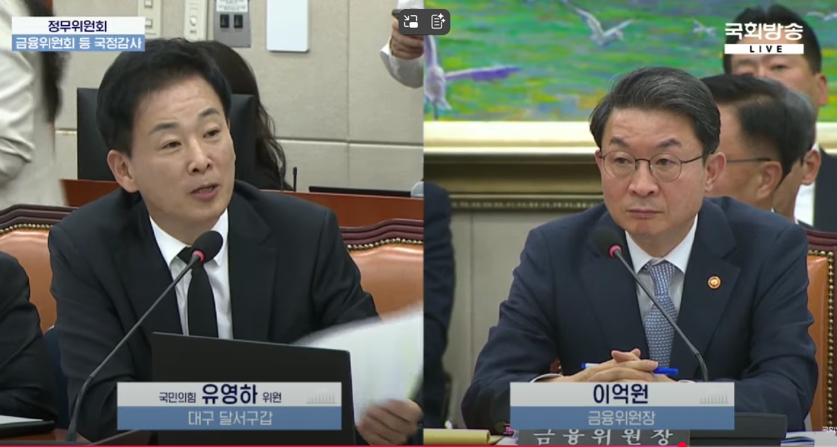 20일 서울 영등포구 여의도 국회에서 열린 정무위원회의 금융위원회 대상 국정감사에서 유영하 국민의힘 의원은 “금융위 내부에서 스테이블 코인을 도입했을 때 발행사들의 초기 비용과 연간 운영비용을 산정해 시뮬레이션 한 적이 있는지”에 대해 금융위에 질의했다.
