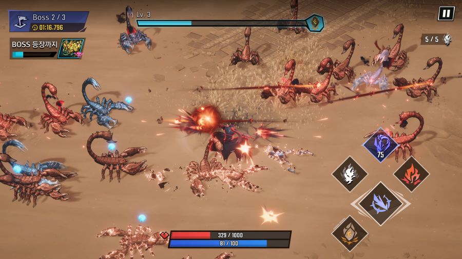 버프 효과가 중첩되면서 시간이 지나면서 전투의 양상이 크게 달라진다. 죽음을 불사하는 하이 리턴 하이 리스크의 다수전부터, 회피 스킬을 활용한 몰이 사냥까지 폭넓은 전략을 취할 수 있는 것 또한 <나 혼자만 레벨업: 카르마>의 전투가 가진 매력이다.